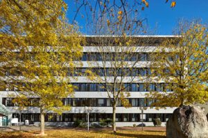 aig+ hat das erste Gebäude in hybrider Bauweise fertiggestellt. Dabei wurde die Tragstruktur aus Stahlbeton des Bestands genutzt. Die Aufstockung und die Gebäudehülle wurde in Holzbauweise erstellt.