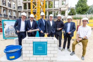 Am 18.08.2022 fand die Grundsteinlegung für das Geschäftshaus „Et Bröckske“ mit dem Oberbürgermeister der Stadt Krefeld Frank Meyer statt.